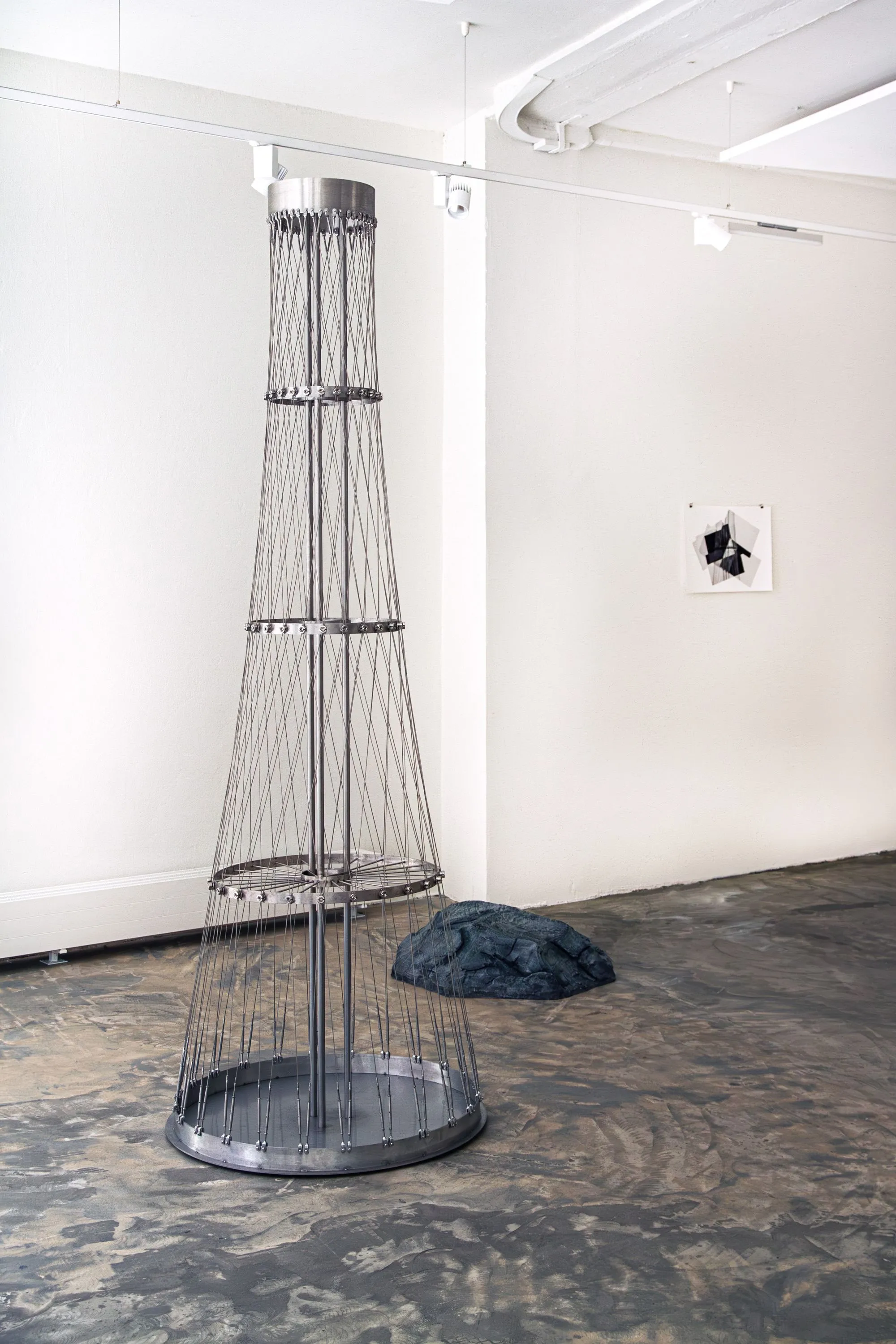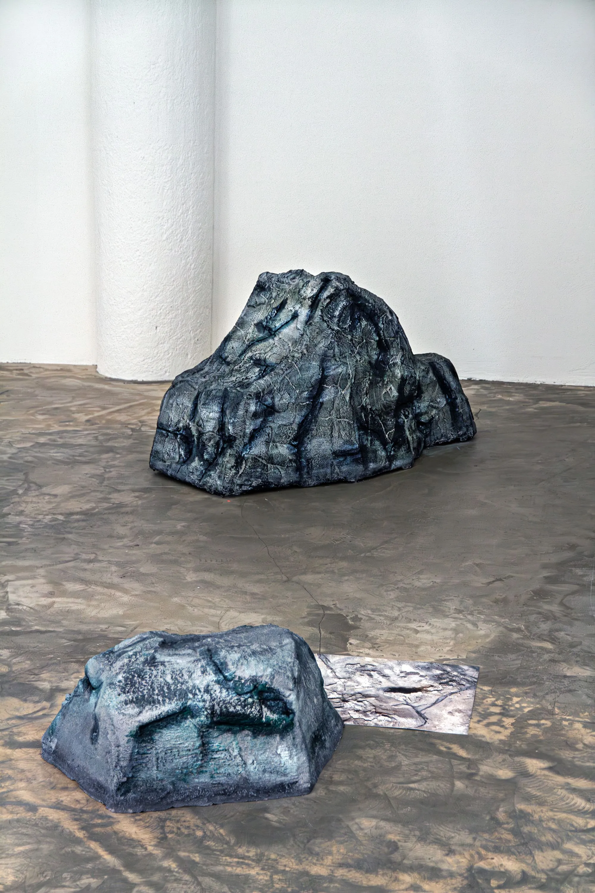 The exhibition attempts to bring together several themes dear to BUREAU: rocks, abstract art, photographic images, and hybrid creative formats, all within an immersive environment. A series of distinctive characters revolves around a central element that illuminates the space, creating an atmosphere that is both comforting and unsettling. As a constructed, imaginary landscape, this luminous, stone-like community tells multiple stories: tales of the lake, magnificent constructions built by distant engineers and healers, and mysterious caves. Narrative architectures for deeply rooted fictions.