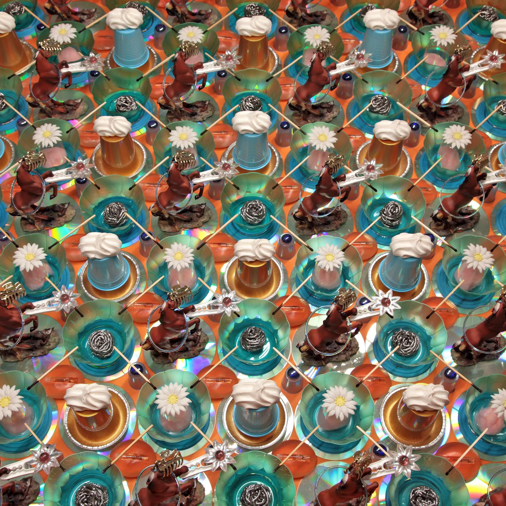 Drawing on themes central to the artist—such as the studio, recycling, and ephemerality—this new piece uses as its creative foundation the cement tiles that once adorned the lobby of the recently demolished building at Route des Acacias 66 in Geneva, where the artist established his first studio in 1986.