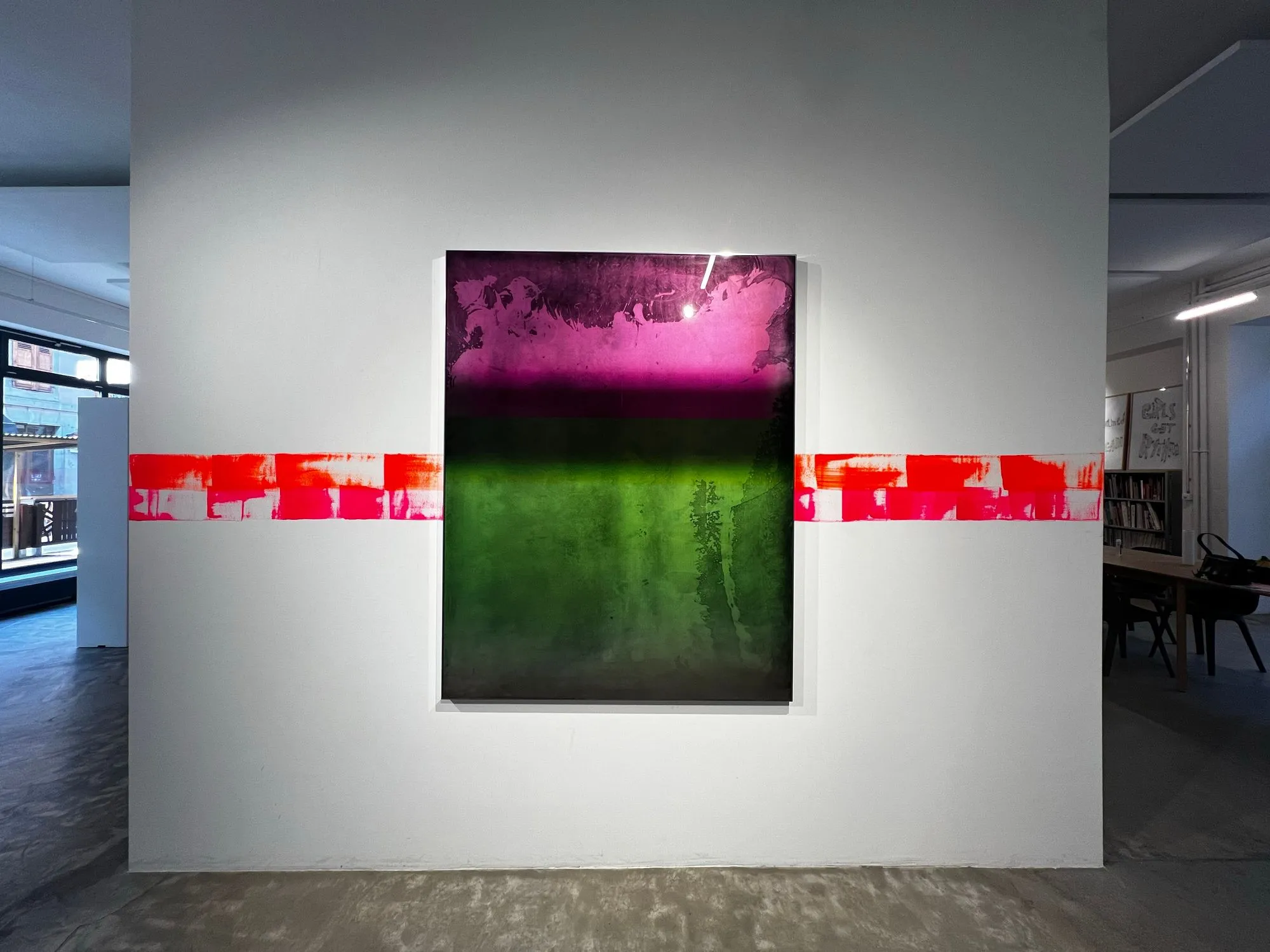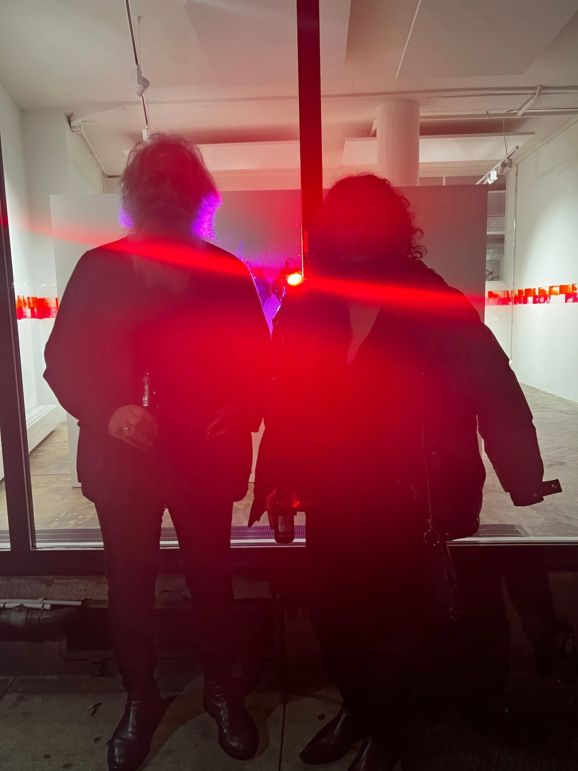 Their works shift between emotional and robotic attitudes. The artist duo reclaim the sparkling and authoritative visual language of the media and night spheres in a climate of sensory hyperstimulation created by multiple neons, slogans, light beams, mirror balls, and confetti, while playing with our universal attraction to glittering, seductive objects. It is all the work of encryption to which they summon us, between the true and the false, the artificial and the superficial, as if everything were a case of falsification.
